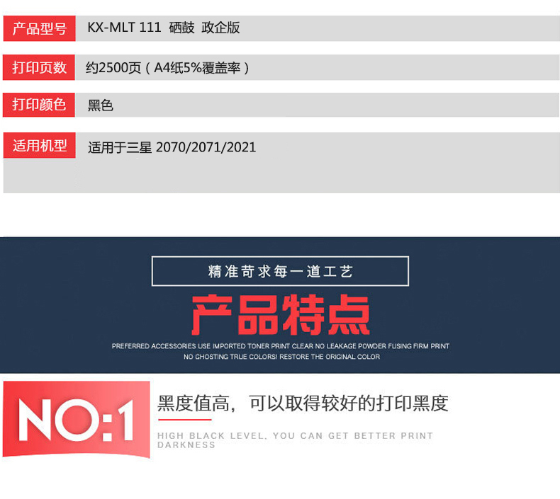 凱欣政企版 KX-MLT 111 硒鼓 適用于MLT-D111S M2070 M2021 M2022 M2020 碳粉墨盒 M2021W M2020W 2071FH M2070FWFW 全國統(tǒng)一價:146元