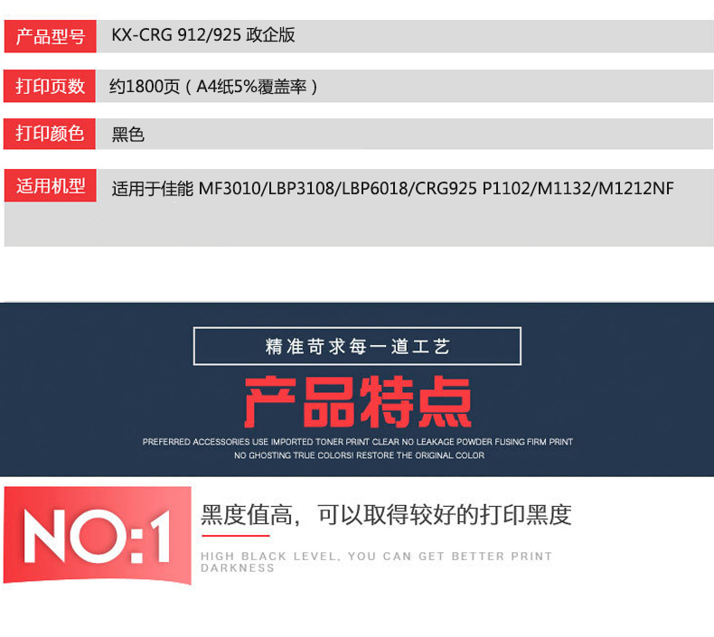 凱欣政企版 KX-CRG 912/925 硒鼓 適用于佳能 MF3010LBP3108L惠普P1102M1132全國統(tǒng)一價:126元