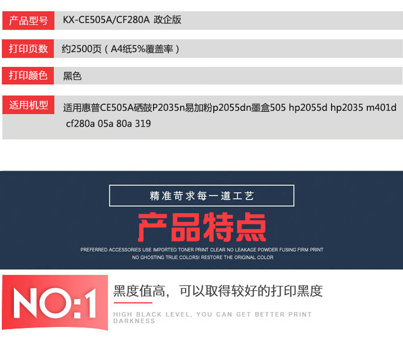 凱欣政企版 KX-CE505ACF280A 適用惠普CE505A硒鼓P2035n易加粉p2055dn墨盒505打印機 全國統(tǒng)一價:146元