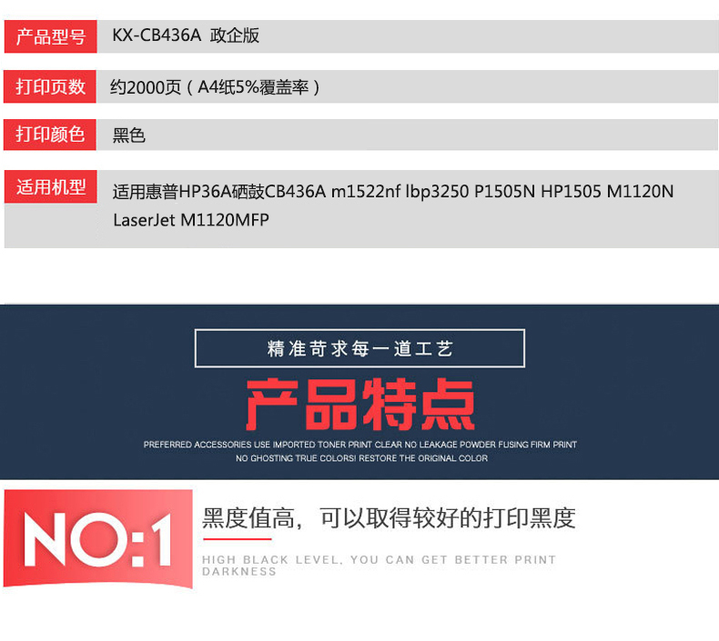 凱欣政企版 KX-CB436A 硒鼓 適用惠普HP36A CB436A m1522nf墨盒佳能lbp3250 P1505N HP1505打印機 全國統(tǒng)一價:130元