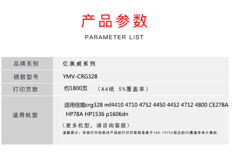 億美威 YMV-CRG328 適用佳能MF4410/4412/4420/4452/4572/4710 全國(guó)統(tǒng)一價(jià):178元