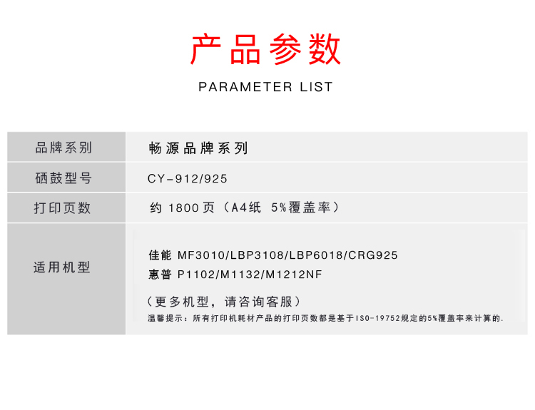 暢源CY-912/925 適用于佳能 MF3010/LBP3108/LBP6018/CRG925 惠普P1102/M1132全國統(tǒng)一價:85元
