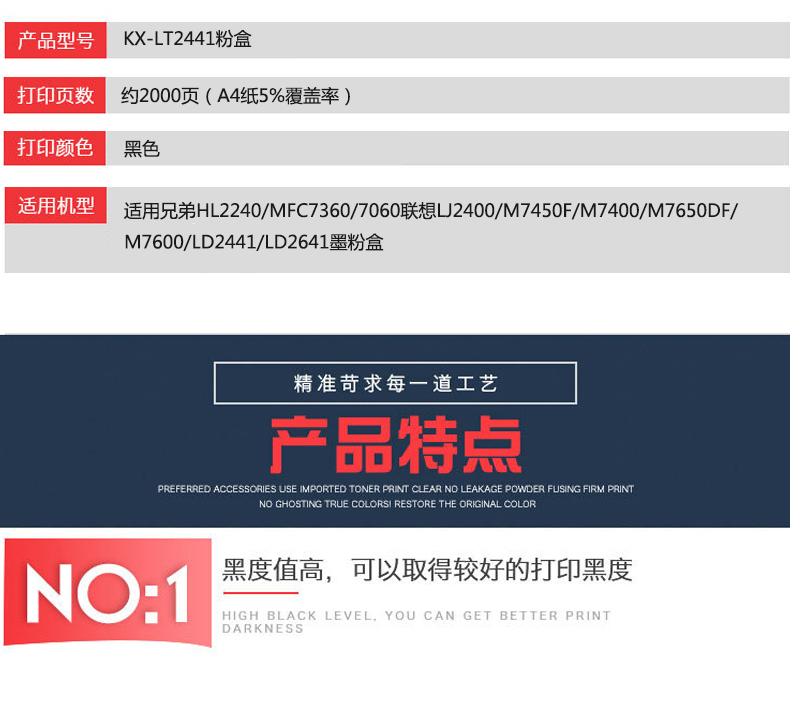 凱欣標(biāo)準(zhǔn)版 KX-LT2441粉盒 適用兄弟HL2240/MFC7360/7060聯(lián)想LJ2400/M7450F/ M7400/M7650DF/M7600全國統(tǒng)一價(jià):136元
